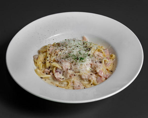 Linguine tossed through a creamy sauce with parmesan cheese & mushrooms