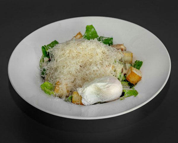 Classic caesar salad crispy cos lettuce, crunchy croutons, chicken & bacon tossed in a creamy caesar dressing with parmesan cheese. Topped with a poached egg.
