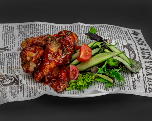 6 chicken wings marinated in your choice of hickory BBQ or buffalo sauce