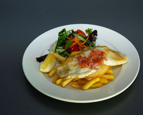 300g of fresh, pan-fried sweet lip served served with chips, salad & Pico de Gallo salsa.